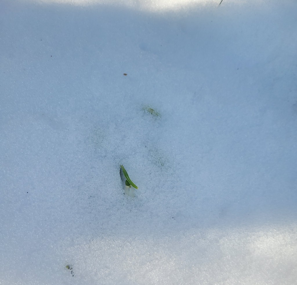 Un pâlc de ghiocei își pleacă floarea sub satârul gerului necruțător că s-au grăbit să înflorească înainte de vreme. Îi salvează neaua ce îi acoperă, neașteptat, ca o împlinire în simbioza unui alb pur din dimensiuni temporale diferite. Toporașii se lasă chemați de brândușe deși nu-și prea doresc să le însoțească. Fiecare are nevoie de momentul său, răspândind vestea că va fi unic sub soarele care își râde în raze, încă, jucăuș.